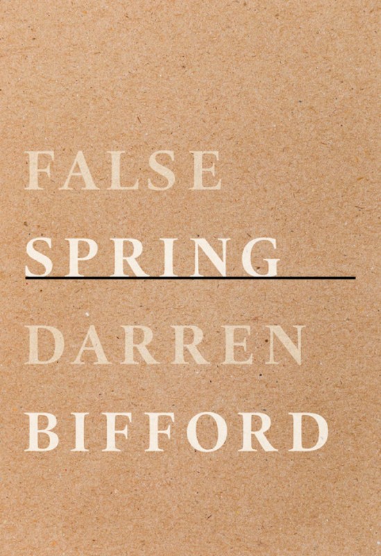 False Spring, Darren Bifford’s second collection of poetry, is a book largely concerned with various forms of collapse and cultural disintegration. These are poems of considerable weight and great energy at once, so that the impression is of a large-muscled animal that is also nimble. They are the work of an engaged moral imagination, alive with the conceptual issues of the times embedded in experience; their “philosophical” import speaks out of the poetic act itself.