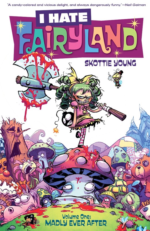 From superstar writer and artist SKOTTIE YOUNG (Rocket Raccoon, Wizard of Oz, Fortunately, The Milk), comes the first volume of an allnew series of adventure and mayhem. An Adventure Time/Alice in Wonderland-style epic that smashes its cute little face against grown-up Tank Girl/ Deadpool-esque violent madness. Follow Gert, a forty-year-old woman in a sixyear- oldOs body, who has been stuck in the magical world of Fairyland for nearly thirty years. Join her and her giant battleaxe on a delightfully bloodsoaked journey to see who will survive the girl who HATES FAIRYLAND. Collects I HATE FAIRYLAND #1-5."