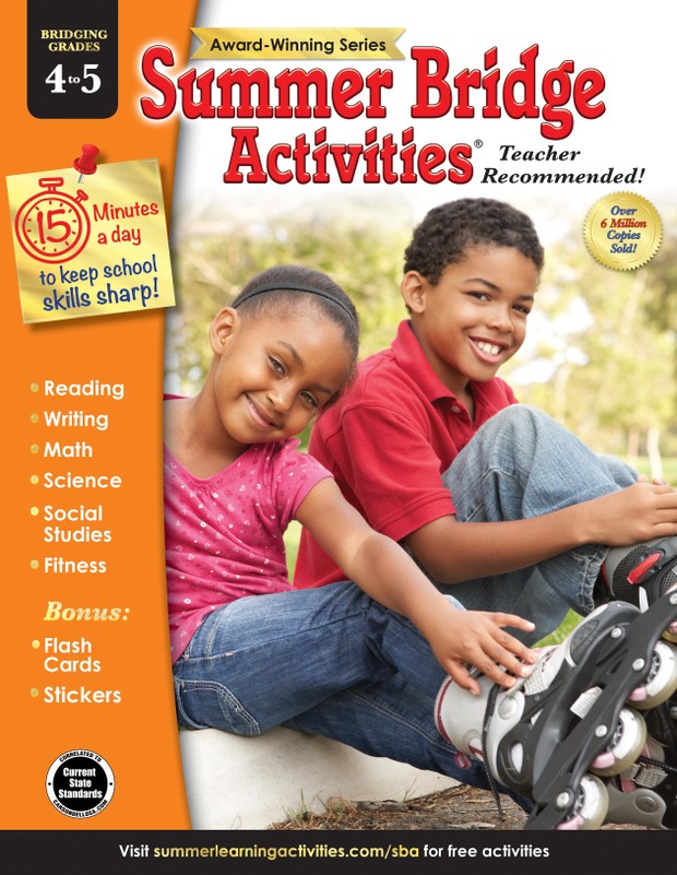 Recipient of Creative Child Magazine's 2018 Kids' Product of the Year Award and 2018 Travel Fun of the Year Award, Summer Bridge Activities is a distinguished series that engages children's creativity and learning potential. Give your soon-to-be fifth grader a head start on their upcoming school year with Summer Bridge Activities: Bridging Grades 4-5. With daily, 15-minute exercises kids can review fractions and prepositional phrases and learn new skills like finding volume and understanding homographs. This workbook series prevents summer learning loss and paves the way to a successful new school year.And this is no average workbook-Summer Bridge Activities keeps the fun and the sun in summer break! Designed to prevent a summer learning gap and keep kids mentally and physically active, the hands-on exercises can be done anywhere. These standards-based activities help kids set goals, develop character, practice fitness, and explore the outdoors. With 12 weeks of creative learning, Summer Bridge Activities keeps skills sharp all summer long!