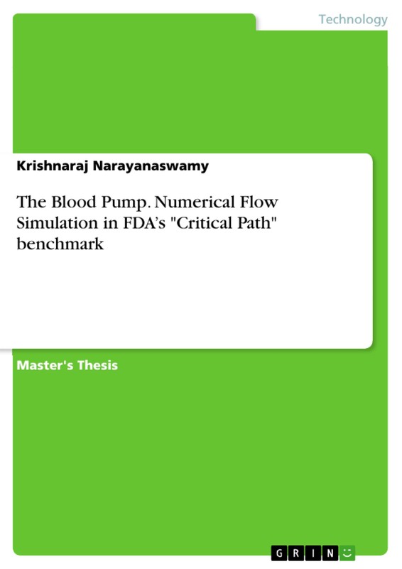 Master's Thesis from the year 2019 in the subject Engineering - Mechanical Engineering, grade: 1.3, University of Rostock, course: Computational Science and Engineering, language: English, abstract: The work focuses on the analysis of the flow fields in the FDA's "Critical Path" benchmark blood pump. The CAD model of the pump is an opensource material, so the thesis works started with the mesh generation. A block-structured hexahedral mesh has been created using ANSYS ICEM CFD 15.0. An unsteady (URANS) incompressible blood flow simulation has been performed using k-¿ SST turbulence model, with one of the operating conditions prescribed by the experimental literature. The simulations were performed using ANSYS CFX 19.1 solver. The validated results for the flow field show promising results in the blade passage region and the diffuser regions but the pressure head obtained has some discrepancies which were analyzed and justified. In addition, a study on hemolysis prediction using Power Law was performed, and the blood damage values of the benchmark blood pump were calculated for the stress-based model in the Eulerian approach. The role of Computational Fluid Dynamics (CFD) in the biomedical field has increased a lot in recent years. The problems related to biocompatibility in medical and biological industries capture the attention of CFD engineers. One such biocompatible device is a Ventricular Assist Device (VAD). The development phase of VAD's associates CFD to make it more robust. VADs generally incorporated with blood pumps, so it is essential to examine the dynamics of the blood flow in the pump and also to analyze the damages concerned with the blood cells. The U.S. Food and Drug Administration (FDA)and the Center of Devices and Radiological Health (CDRH) have sponsored certain CFD"round-robins" to validate the efficiency of computer simulations in biomedical applications. The 'Computational round-robin #2' concerns with a "Critical Path" benchmark blood Pump.