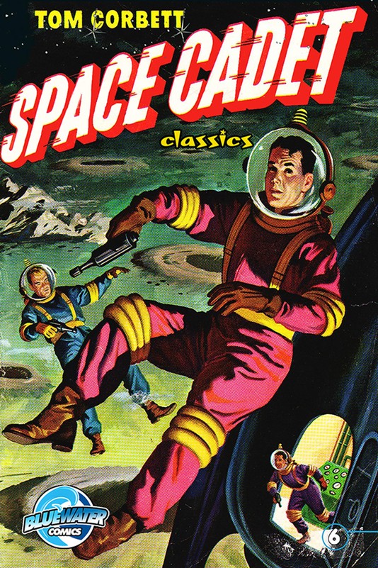 From April 1953, "e;The Smugglers of the Moon"e; : Pirates using the moon as a hideout,capture the cadets. The cadets find a world within the Moon with people only 4 1/2 ft tall.
