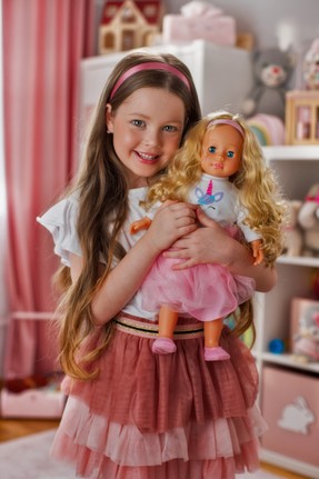 Sveikas atvykęs į šaunų bo. draugų pasaulį, kuriame smagūs pokalbiai ir kūrybiški žaidimai niekad nesibaigia. Susipažink su Milana – kalbančia lėle, kuri pasiruošusi tapti tavo naująja drauge! Lėlė Milana turi ilgus šviesius plaukus, kuriuos gali šukuoti ir kurti įvairiausias šukuosenas, ir užsimerkiančias gražias žydras akis. Lėlytė vilki stilingą rožinį sijonėlį, baltą palaidinę su violetiniu vienaragiu, avi mielus rožinius batelius, o plaukus yra pasipuošusi stilingu lankeliu! Lėlė kalba rusų kalba, moka daugiau kaip 20 frazių ir dainuoja gražią dainelę. Paspausk Milanos pilvuką ir paklausyk, ką ji tau pasakys! Šukuok lėlytės plaukus, daryk šukuosenas, apkabink, žaisk ir kalbėk su ja – Milana pasiruošusi smagiai praleisti laiką! Kalbančios lėlės Milanos dydis – 40 cm.