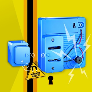 Susikonstruok patikimą signalizaciją! Diskas pagamintas iš plieno, metalo, kurį traukia magnetas. Kai durys uždaromos ir magneto laikiklio bei pagrindo trikampiai susilygiuoja, magnetas patraukia diską į vieną plokštelės pusę. Kai durys atidaromos, magnetas nutolsta nuo pagrindo, ir magneto traukos nebepakanka diskui išlaikyti. Diskas nurieda atgal į plokštelės apačią ir atsiduria tarp dviejų terminalų. Tai suveikia kaip jungiklis, užbaigiantis elektros grandinę ir leidžiantis srovei tekėti per skambutį.