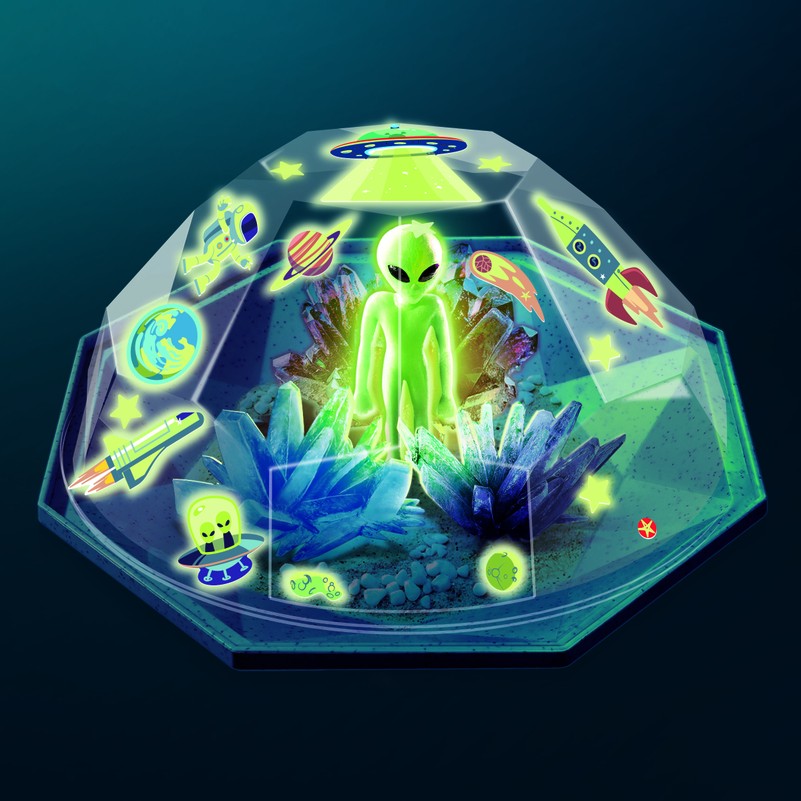 Užsiaugink kristalus ir pasigamink šaunų kosmoso terariumą su ateivio figūrėle!