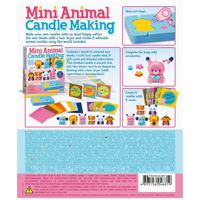 Pasigamink išskirtines žvakutes! Fenu suminkštink vaško lakštus ir suformuok 6 mielus gyvūnėlius-žvakutes! Rinkinyje yra 1 formelė, 8 spalvoto vaško lakštai, 1 modeliavimo įrankis, dagtis, 6 dovanų atvirutės ir išsami instrukcija. Žvakučių aukštis - apie 3 cm. Rekomenduojama vaikams nuo 8 metų.