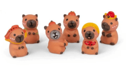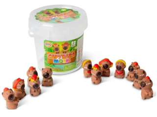 Indelyje yra 12 žavingų mini kapibarų, pagamintų iš minkštos medžiagos. Jos maloniai laikosi rankose ir padeda sumažinti stresą ar nuobodulį. Dėl patogaus indelio galite jas tvarkingai laikyti ar pasiimti bet kur.