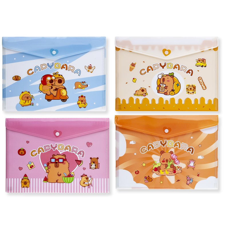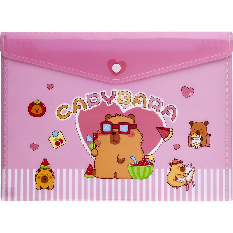 Aplankas (vokas) CENTRUM „Capybara“ puikiai tinka sudėti dokumentus, popieriaus lapus, sąsiuvinius. Su spaustuku. Formatas: A4. Pagamintas iš polipropileno.  Dizainas parenkamas atsitiktinai.