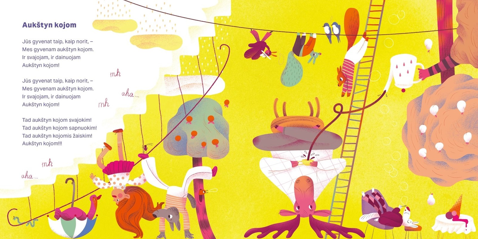 Šioje knygoje rasite šešias legendinio muzikinio spektaklio „Aukštyn kojom“ dainas: