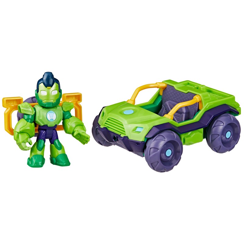 Prisijunk prie Geležinio žmogaus komandos naujausiame nuotykyje su šaunia transporto priemone ir figūrėle! Pasodink figūrėlę į 7,6 cm transporto priemonę arba nuimk automobilio spoilerį ir apginkluok savo herojų pritaisydamas spoilerį jam prie nugaros tarsi apsauginius šarvus!