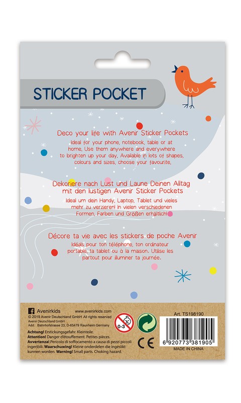 Papuošk savo kasdienybę šauniais „Avenir“ lipdukais! Šie lipdukai puikiai tiks užklijuoti ant telefono, užrašų knygelės, planšetės, kompiuterio ar kur tik panorėsi. Lipdukai yra įvairių formų ir spalvų – išsirink sau patinkantį ir suteik naujų spalvų savo kasdien naudojamiems daiktams. Rinkinyje yra 20 lipdukų. Rekomenduojama vaikams nuo 3 metų. Matmenys: 16,5 cm x 11 cm.