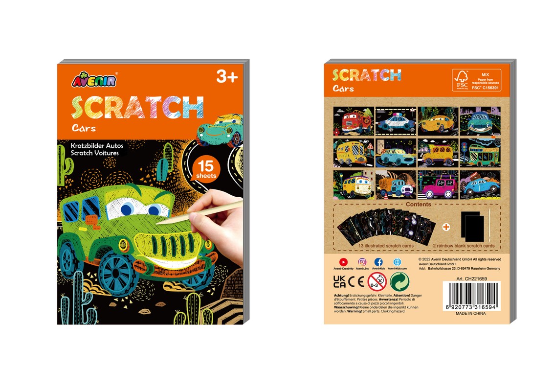 Mini Nutrinamų kortelių rinkinys „Automobiliai“. Puiki kelioninė veiklos knygelė. Nutrink juodą paveikslėlių sluoksnį ir atrask daugybę spalvų! Rinkinyje yra 13 nutrinamų kortelių su paveikslėliais, 2 vaivorykštės spalvų nutrinamos kortelės ir medinė lazdelė.