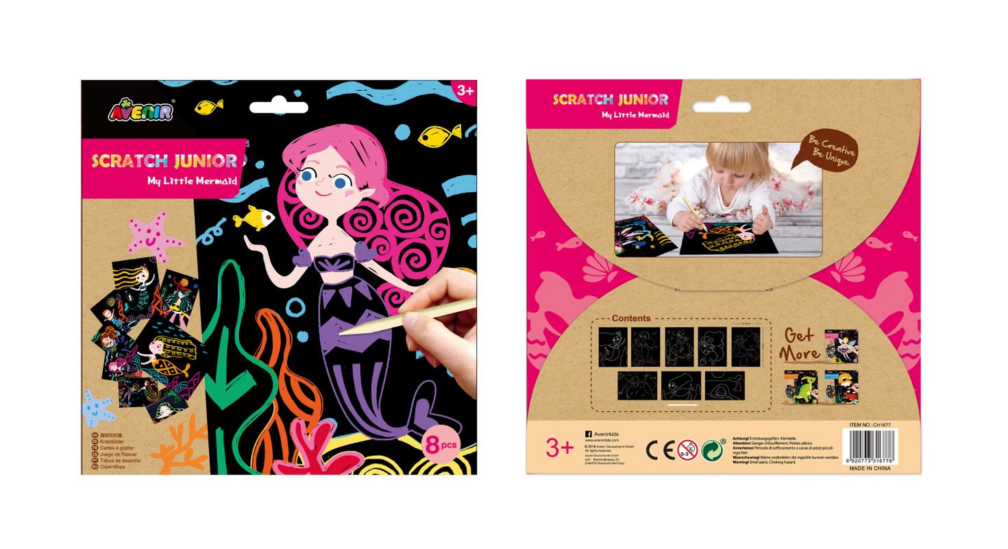 Šaunus ryškiaspalvis kūrybinis „Avenir“ rinkinys sudomins ir bus tikra pramoga mažiesiems menininkams. Nutrink juodą kortelių sluoksnį ir sukurk smagius undinėlių eskizus. Rekomenduojama vaikams nuo 3 metų. Rinkinyje yra 8 nutrinamos kortelės ir speciali medinė lazdelė paveikslėliams nutrinti.