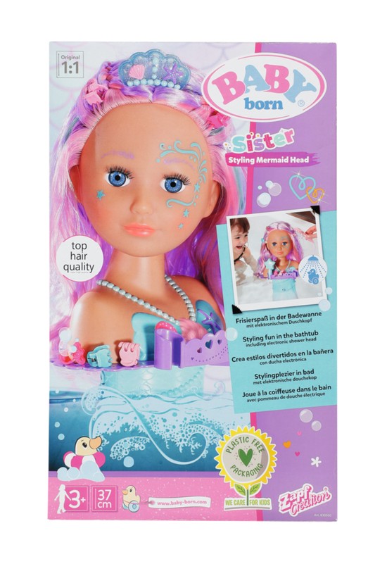 Leiskis į magišką grožio pasaulį su BABY BORN lėlyte undinėle! Su šia lėlyte maudynės vonioje taps nauju nuotykiu! Lėlytė undinėlė turi gražius ir kokybiškus ryškiaspalvius plaukus, kuriuos gali išplauti rinkinyje esančiu iš tikrųjų veikiančiu dušu, o tada šukuoti, susegti segtukais ar papuošti tiara. Pasitelk kūrybiškumą ir leisk vaizduotei šėlti bangose drauge su šaunia undinėle!