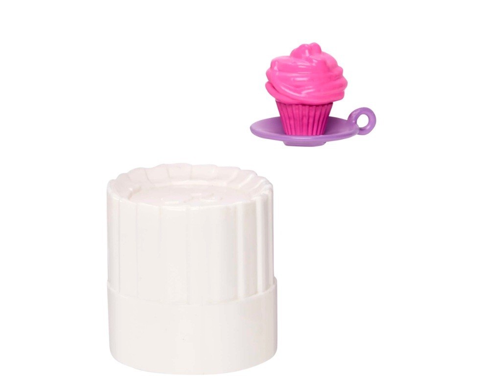 - Taip pat įeina skanus rožinis keksiukas, kuris tikrai tilps Barbie lėlės rankoje, kad sustiprintų žaidimo pasakojimą!