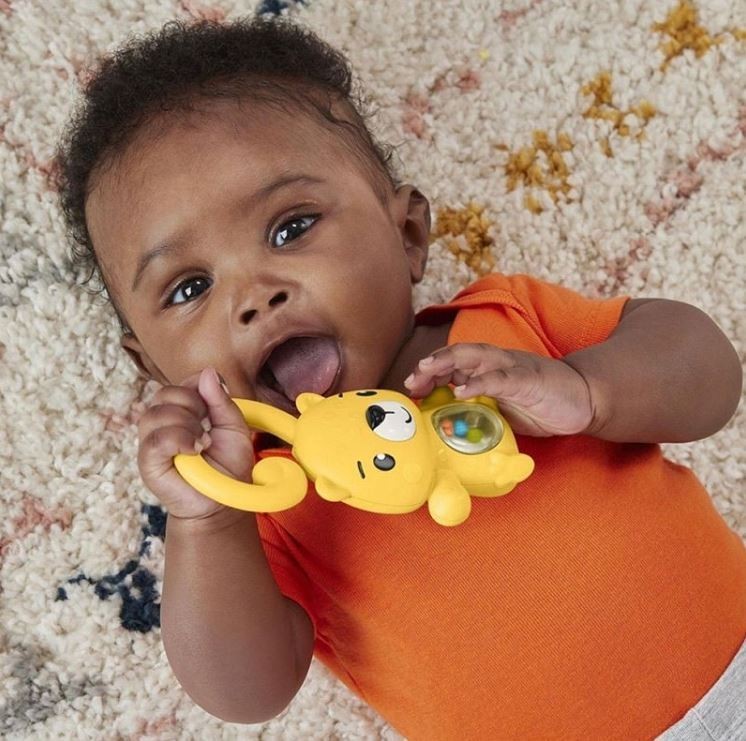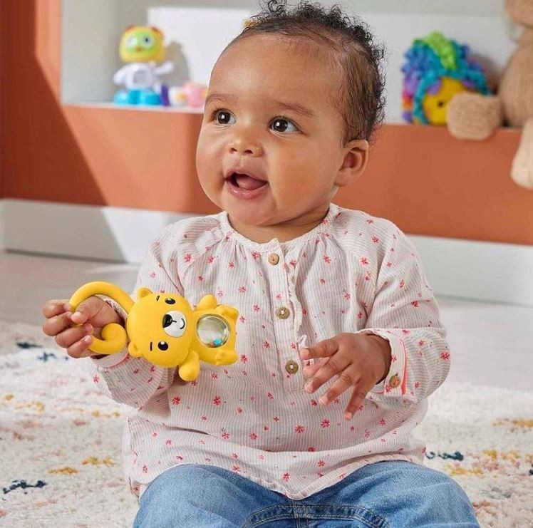 - Ryškios spalvos, smagūs garsai ir tekstūros lavina kūdikio pojūčius, padeda įtvirtinti motorinius įgūdžius ir suprasti priežasties-įtakos koncepcijas 3 mėnesių ir vyresniems kūdikiams.