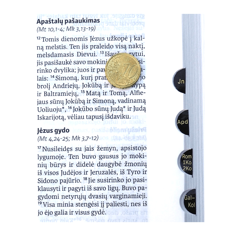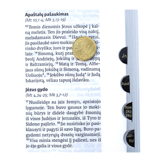 Ekumeninis leidimas (su Antrojo kanono knygomis). Auksuoti puslapiai, yra knygų iškartos. Su puikiais priedais studijavimui: spalvotais žemėlapiais, matavimo vienetų bei chronologinėmis lentelėmis. Senąjį Testamentą iš hebrajų, aramėjų ir graikų kalbų vertė Antanas Rubšys. Naująjį Testamentą iš graikų kalbos – Česlovas Kavaliauskas.