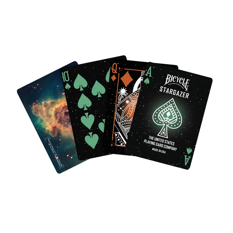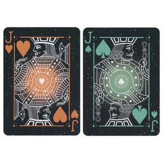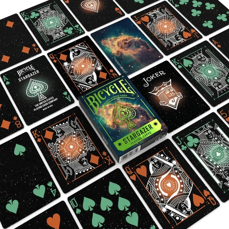 Su žvaigždynų įkvėptu figūrinių kortų dizainu ir žalia folija dekoruota dėžute jūs dalinsite tikrą visatos pramogą.