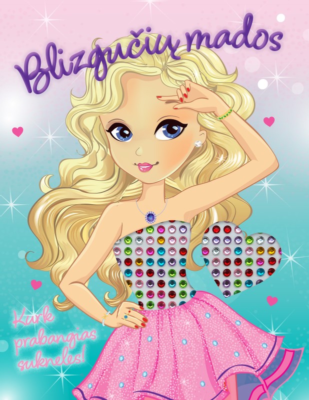 Kurk svajonių sukneles! Nuspalvink modelius, priklijuok lipdukų ir papuošk žėrinčiais akmenėliais – sukurk pačią gražiausią suknelę! Su lipdukais ir akmenėliais.