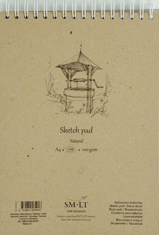 Popierius pagamintas iš 100%. perdirbtos medvilnės, su kieta nugarėle ir spirale.