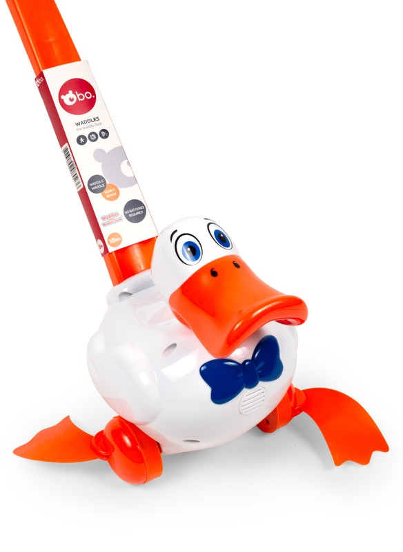 Geriausias mažylių draugas – bo. stumtukas „Krypuojantis ančiukas“! Šis žavus kompanionas žada begalę džiaugsmingų akimirkų. Krypuojantis ančiukas – tai šaunus žaislas, kuriam nereikia baterijų! Stebėkite, kaip stumiamas ančiukas smagiai krypuoja! Žaislas skirtas mažoms rankytėms, turi patogią rankeną, leidžiančią jį lengvai stumti. Šis ančiukas ne tik suteikia džiaugsmo, bet ir padeda stiprinti stambiąją motoriką, kartu supažindindamas mažylį su priežasties ir pasekmės sąvokomis. Stumtuką lengva surinkti per mažiau nei 1 minutę. Rankenėlė lengvai įstatoma, tam nereikia jokių įrankių. Stumtukas skirtas mažyliams nuo 18 mėnesių.