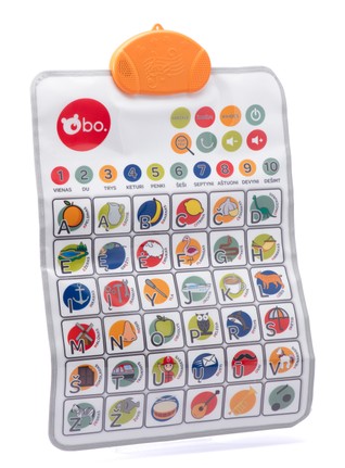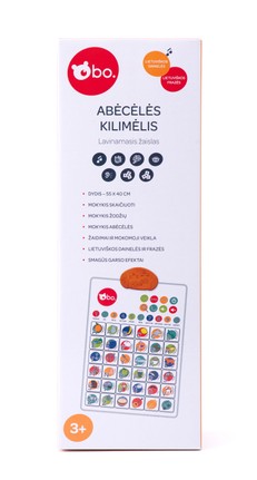 Smagus bo. žaidimų kilimėlis padės mažyliui mokytis raidžių, skiemenų, žodžių ir skaičių! Kilimėlis turi linksmą žaidimą, kurį žaisdamas vaikas turės rasti teisingus žodžius, skaičius ir raides, bei 5 vaikiškas daineles! Kilimėlio matmenys – 55 x 40 cm.