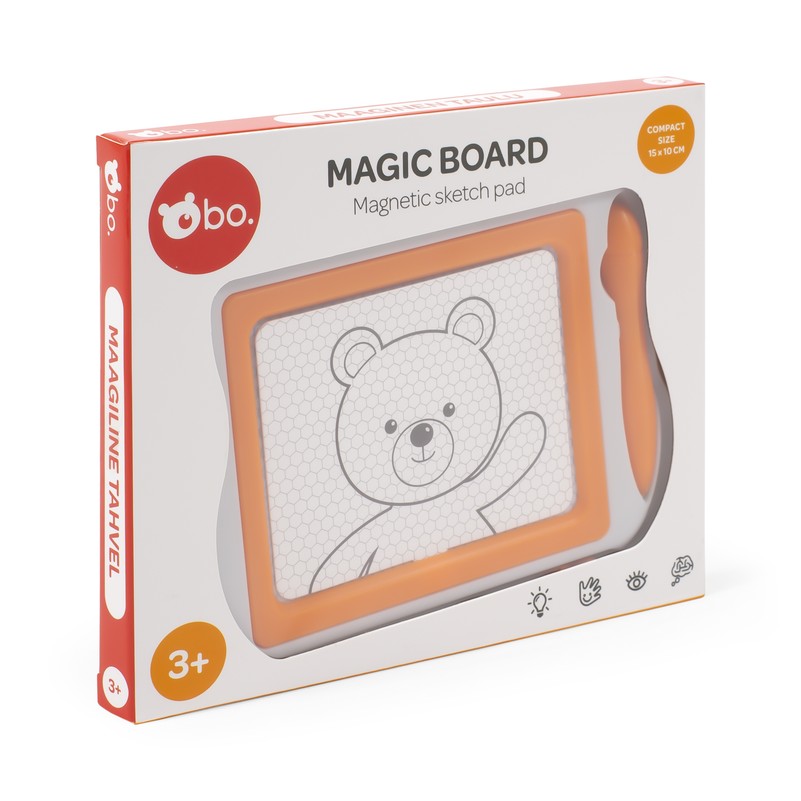 Magnetinė bo. piešimo lentelė supažindins vaiką su meno pasauliu! Tiesiog paimk magnetinį rašiklį ir pradėk piešti, o panorėjęs – viską greitai ištrink! Dėl savo kompaktiško dydžio – 15 x 10 cm – magnetinė lentelė puikiai tiks pasiimti į kelionę!