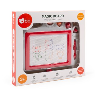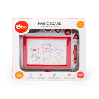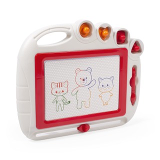 Magnetinė bo. piešimo lentelė supažindins vaiką su meno pasauliu! Tiesiog paimk magnetinį rašiklį ir pradėk piešti, o panorėjęs – viską greitai ištrink! Kad piešti būtų dar smagiau, pridedami ir keturi magnetiniai antspaudukai, o lentelės pagrindas yra keturių skirtingų spalvų. Dėl savo kompaktiško dydžio – 27 x 22 cm – magnetinė lentelė puikiai tiks pasiimti į kelionę!