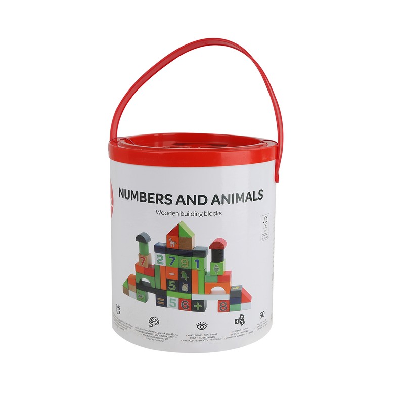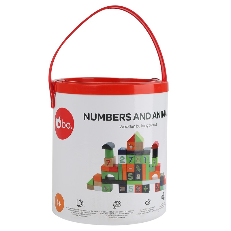 Mokomasis bo. medinių kaladėlių rinkinys „Skaičiai ir gyvūnai“ supažindina vaiką su skaičių ir gyvūnų pasauliu, moko skaičiuoti ir atlikti nesudėtingus aritmetinius veiksmus. bo. rinkinys – puikus pirmasis žingsnis į matematikos pasaulį. Rinkinyje esančios kaladėlės sunumeruotos skaičiais nuo 0 iki 9, penkios iš jų turi aritmetinius simbolius, todėl mokytis lengva net patiems mažiausiems