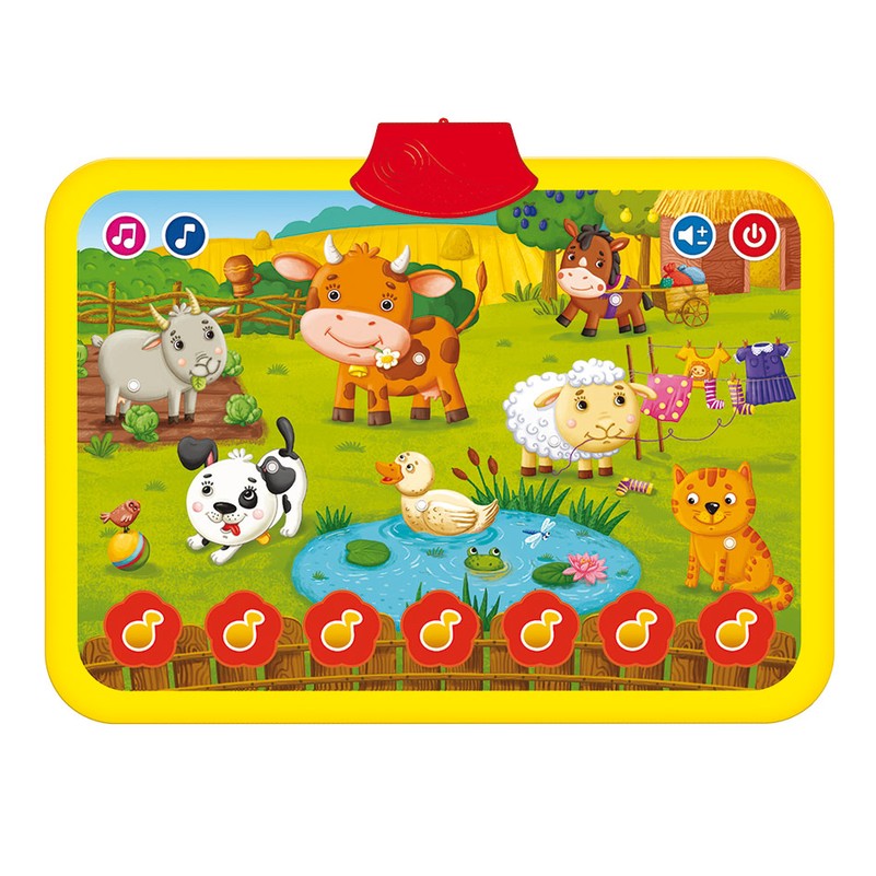 bo. muzikinis žaidimų kilimėlis „Ūkio gyvūnai“ supažindina vaikus su gyvūnų pasauliu ir jų skleidžiamais garsais. Ant šio kilimėlio mažylis sutiks mielų gyvūnų ir galės pasiklausyti jų garsų. Spausk spalvotas natas ir mėgaukis linksmais garso efektais ir įvairiomis melodijomis! Muzikinis žaidimų kilimėlis lavina vaiko motorinius įgūdžius ir vaizduotę.