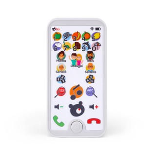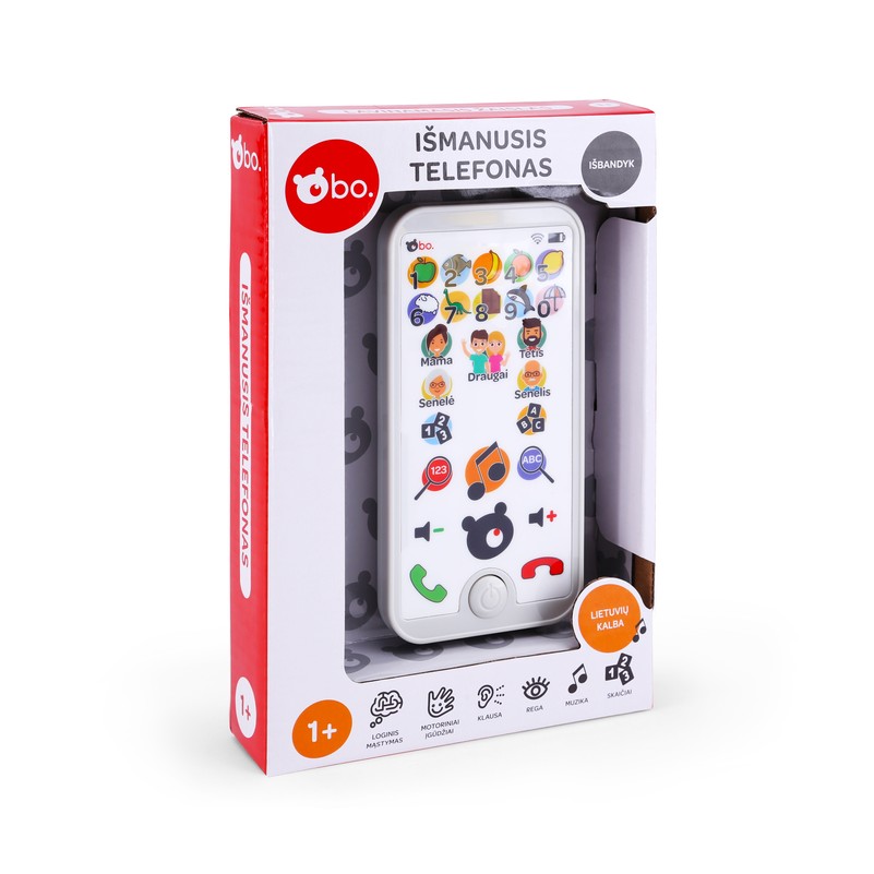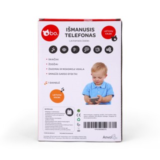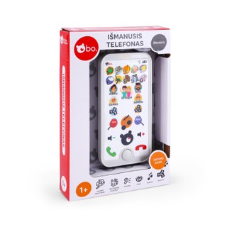 Šis šaunus bo. išmanusis telefonas – ne tik smagus, bet ir lavinantis žaislas. Telefonas turi du linksmus ir lavinančius žaidimus, kuriuos žaisdamas mažylis mokysis skaičių ir žodžių, daugybę smagių garso efektų bei po muzikos natos mygtuku besislepiančią lietuvišką dainelę!