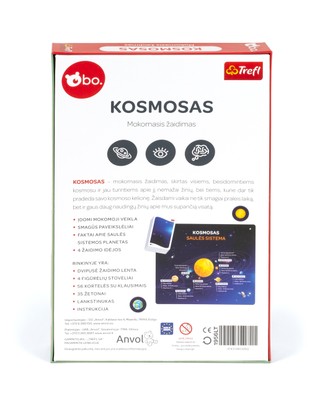 bo. „Kosmosas“ – mokomasis žaidimas, skirtas visiems, besidomintiems kosmosu ir jau turintiems apie jį nemažai žinių, bei tiems, kurie dar tik pradeda savo kosmoso kelionę. Žaisdami vaikai ne tik smagiai praleis laiką, bet ir gaus daug naudingų žinių apie mus supančią visatą.