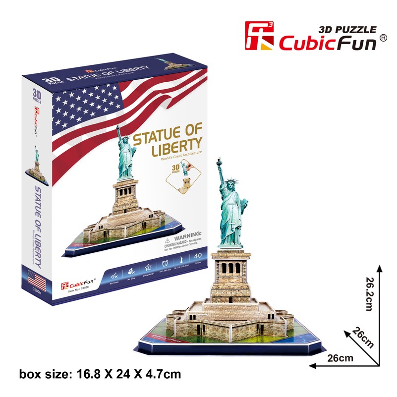 Dėlionės patinka visiems – tai ir smagi, ir lavinanti veikla. Dėlionės – puikus laiko praleidimo būdas tiek vienam, tiek su draugų kompanija. „CubicFun“ – erdvinė dėlionė, galvosūkis - konstruktorius, pagamintas iš popieriaus ir polistireno putų plokštės. Norint surinkti dėlionę, nereikia jokių papildomų įrankių ar klijų. Šios originalaus dizaino dėlionės sudomins ne tik vaikus, bet ir jų tėvelius. Surinktos erdvinės dėlionės atrodo išties įspūdingai – visai kaip tikri statiniai. Dėlionės tiksliai atkartoja net ir smulkiausias pastatų išvaizdos detales. Visos „CubicFun“ dėlionės vaizduoja pasaulinio garso statinius, todėl vaikai gali iš arčiau susipažinti su architektūros šedevrais. Jas dėliodami vaikai ne tik linksmai praleis laiką, bet kartu gaus ir daug naudingos informacijos! Surinktos dėlionės dydis: 26 x 26 x 26,2 cm.
