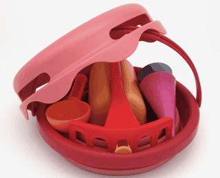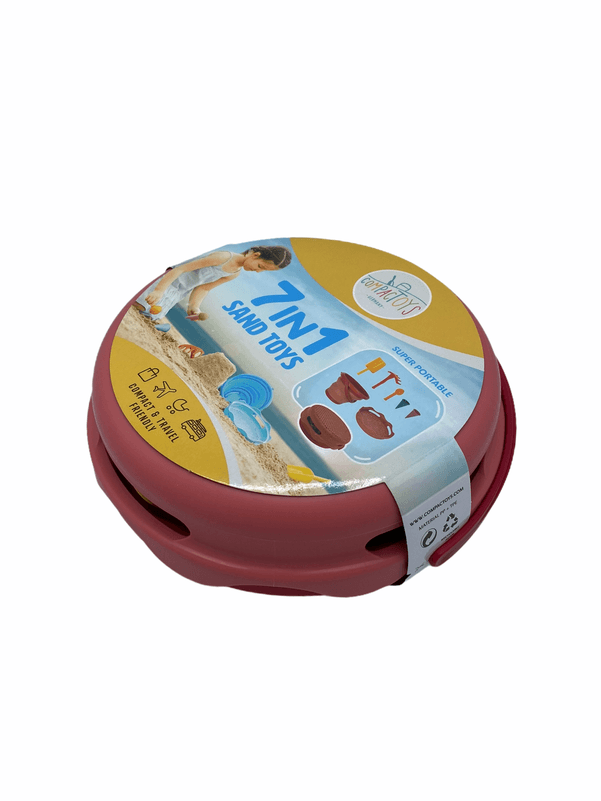 7 dalių „compacToys“ rinkinys – tai tvarūs žaislai, skirti kasti, grėbti, formuoti ir pernešti smėlį. Visi produktai pagamintai iš kokybiško ir tvirto plastiko, jų sudėtyje nėra jokių kenksmingų medžiagų, tokių kaip plastifikatoriai (BPA), tačiau visi ji yra elastingi ir patvarūs. Rinkinyje yra sulankstomas 3 litrų kibirėlis, 22 cm skersmens sietelis, apie 20 cm dydžio kastuvėlis, apie 20 cm dydžio grėbliukas, ledų šaukštelis, 2 ledų kūgeliai (5-6 cm skersmens).