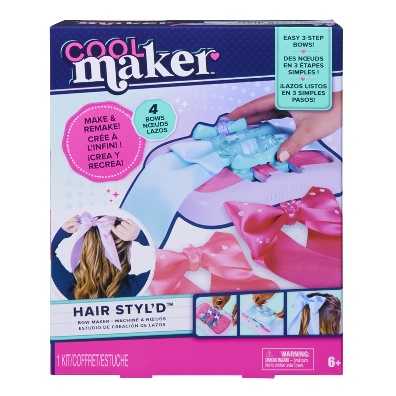 Būk kūrybingas kasdien su šauniu „Cool Maker“ rinkiniu. Ši viskas-viename rinkinys turi viską, ko tau reikia, kad sukurtum stilingus plaukų papuošalus trimis paprastais žingsniais: sukurk dizainą, užsek ir dekoruok. Pradėk pasirinkdamas vieną iš keturių juostelių spalvų, pasirink užsegimą ir padėk juosteles ant aparato. Suspausk aparatą, kad susiformuotų kaspinėlis, uždėk užsegimą ir papuošk blizgančiais akmenėliais. Derink savo kaspinėlį prie aprangos, o paskui išardyk jį ir kurk vėl ir vėl.
