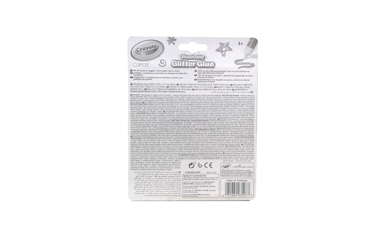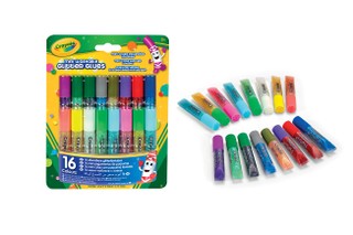 16 tūbelių su blizgiais klijais idealiai tinka atvirukams, piešiniams ir kitiems panašiems daiktams dekoruoti. Skirtingai nuo kitų panašių priemonių, čia klijai ir blizgučiai jau sumaišyti kiekvienoje tūbelėje, tad juos naudoti yra žymiai paprasčiau, o piešinius galima dekoruoti daug tiksliau. Jei klijus netyčia išpilsite, viską lengvai nuvalysite, nes ši masė lengvai nusiplauna tiek nuo rankų, tiek nuo daugelio medžiaginių paviršių. Rekomenduojama vaikams nuo 3 metų.