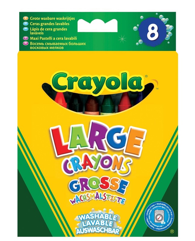 Šios didelės kreidelės spalvina tolygiai, netrupa ir nebraižo paviršiaus. Kreidelės lengvai nusiplauna nuo medžiagų, odos ir kitų paviršių. Be to, jos apvyniotos dvigubu popieriaus sluoksniu, tad yra itin tvirtos. Rinkinyje yra 8 kreidelės. Rekomenduojama vaikams nuo 3 metų.