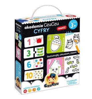 CzuCzu akademijos skaičių rinkinys su spalvinimo knygomis ir teminėmis dėlionėmis siūlo įvairius kūrybinius žaidimo būdus, padedančius vaikams išmokti skaičiuoti iki 10.