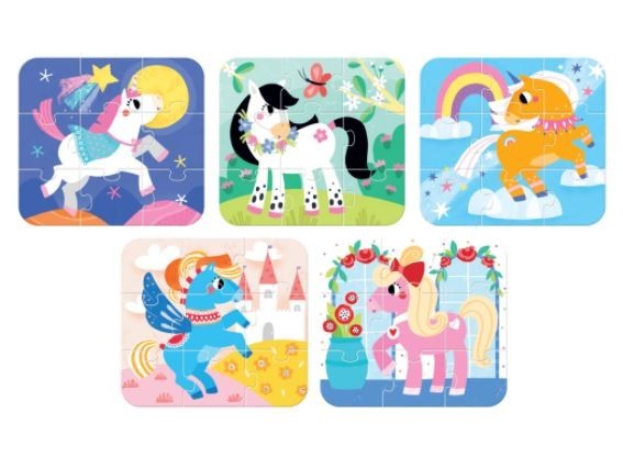 Njūū! Arkliukai iš stebuklingos šalies kviečia žaisti ir linksmintis! Ši edukacinė komplektacija apima 5 dėliones, kurios gerina smulkiosios motorikos įgūdžius, stebėjimą ir vaizduotę.