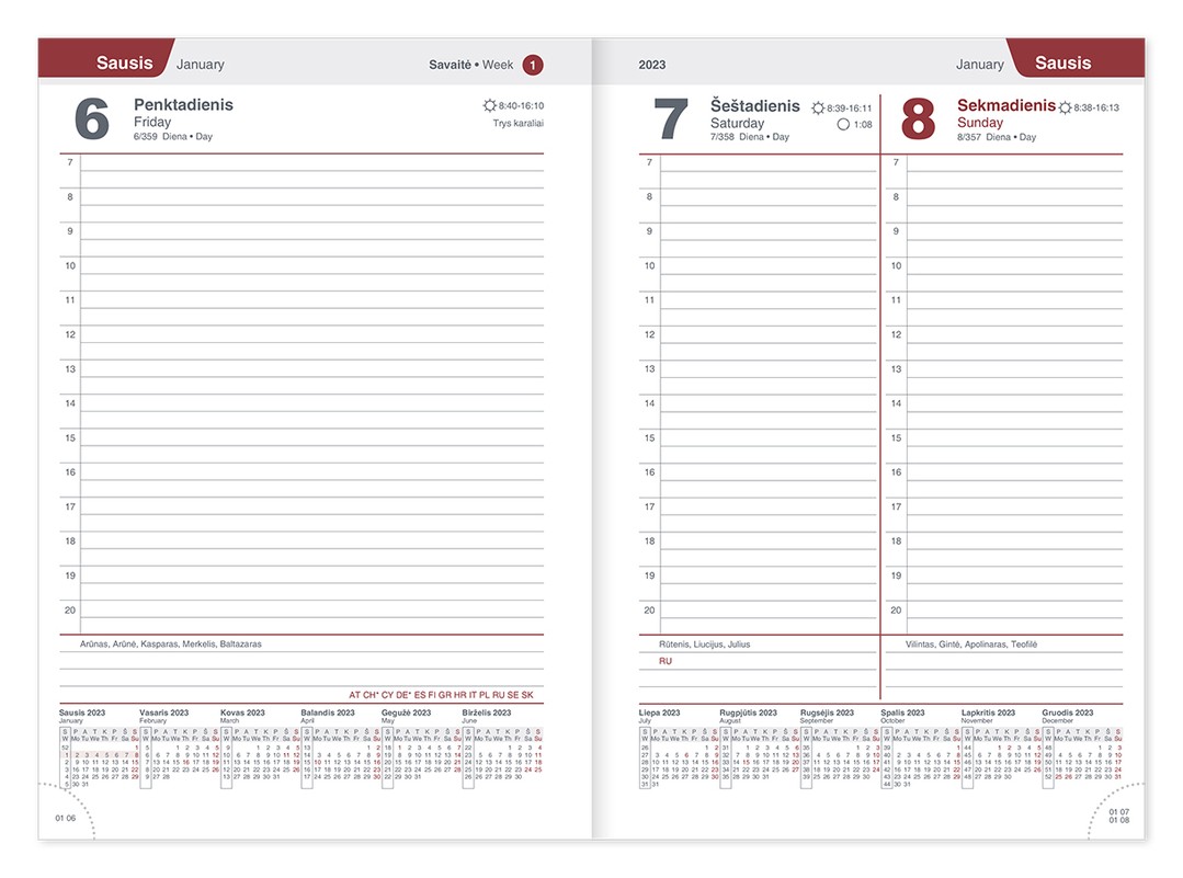 Vienas puslapis skirtas vienai dienai, vardadieniai.