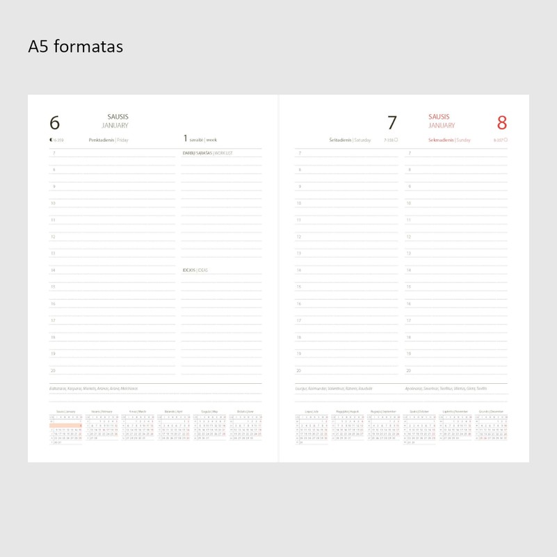 Viena diena – vienas puslapis (savaitgalis dalinamas vertikaliai)