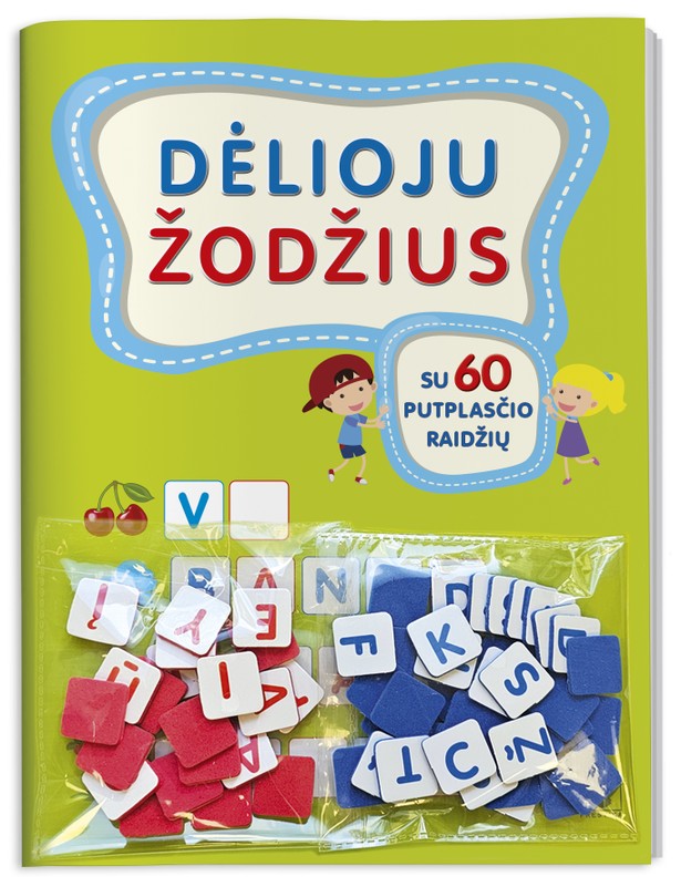 Raidžių rinkinį sudaro 60 raidžių (balsės ir priebalsės – skirtingų spalvų), tad iš jų bus galima dėlioti ne tik knygelėje pateiktus, bet ir daugybę kitų žodžių.