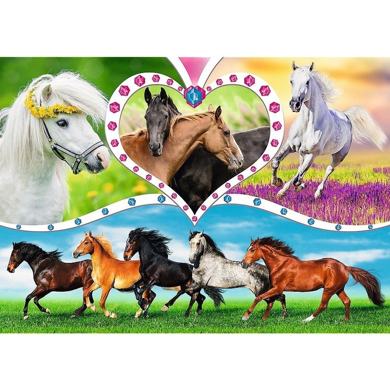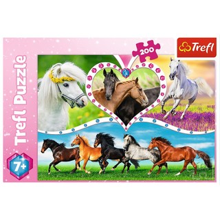200 elementų dėlionė, vaizduojanti gražius arklius. Sudėjus, bus sukurtas 48x34 cm dydžio vaizdas. Aukštą kokybę, spalvų ryškumą ir saugumą užtikrina specialiai apdirbta šviesą atspindinti popieriaus danga, padengta ekologiškais maisto dažais.