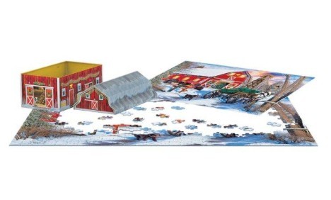 Reljefinė skardinė pakuotė, suformuota kaip tradicinis raudonas tvartas, paverčia šį rinkinį puikiu kolekciniu daiktu ir idealia dovana tiek dėlionių entuziastams, tiek švenčių mylėtojams.