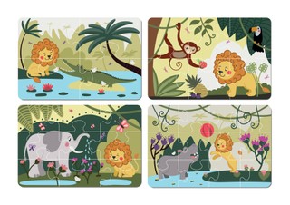 4 dėlionės – iš 4, 6, 9 ir 12 detalių,