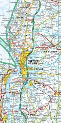 In der Kümmerly+Frey Strassenkarte Deutsche Nordseeküste im Massstab 1:275'000 finden Sie alles, was Sie zur Orientierung und Inspiration brauchen. Dank den deutlich gekennzeichneten, leicht lesbaren und aktuellen Strassen, dem aufgeräumten, aktuellen Kartenbild sowie der Detailgenauigkeit, ist die Karte das perfekte Hilfsmittel, um das Beste aus Ihrem Besuch in dieser aussergewöhnlichen Region zu machen. Die thematische Karte enthält detaillierte Informationen über Ortschaften und das verbindende Strassennetz. Reisende mit Auto oder Motorrad finden dank den gut erkennbaren, übersichtlich dargestellten Autobahnen, Autostrassen, Hauptverkehrsstrassen, Landstrassen und Nebenstrassen immer den richtigen Weg. Die integrierten Informationen mit Ortsverzeichnis und Reiseinformationen vervollständigen das Kartenwerk. Die Faltkarte für Autofahrer oder Motorradfahrer besteht aus einem robusten Cover und Papier. Auch nach mehrmaligem Gebrauch lässt sie Sie nicht im Stich. Sollte das GPS mal nicht funktionieren oder das Handy keinen Akku mehr haben, helfen Ihnen die auf der Karte deutlich verzeichneten Strassen, Aussichtspunkten, Bahnhöfen, Einkehrmöglichkeiten, Campingplätzen, Parkplätzen, etc. stets die Orientierung zu behalten. Sprachen: Deutsch, Englisch, Französisch, Italienisch