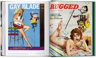 Playboy, launched in December 1953, made a huge impact on publishing, but it was not the only American men’s magazine in the 1950s. The quirky burlesque titles Beauty Parade, Wink, Titter and Eyeful, featuring Bettie Page and covers by artist Peter Driben, inspired a spate of competing titles. Much loved WWII pin-ups, often of aspiring starlets, led to “news and nudes” titles with cover girls Marilyn Monroe and Jayne Mansfield, and to more lurid titles like Shock, blending burlesque and celebrity scandal. In New York City a clandestine fetishist magazine industry, bankrolled by the mob, emerged, first with John Willie’s Bizarre, then Lenny Burtman’s female dominant Exotique.