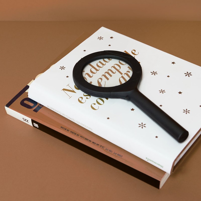 Balvi didinamasis stiklas x 3, juodos spalvos, su apšvietimu.