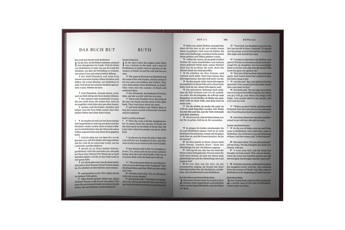 - Deutscher und englischer Text parallel nebeneinander lesbar