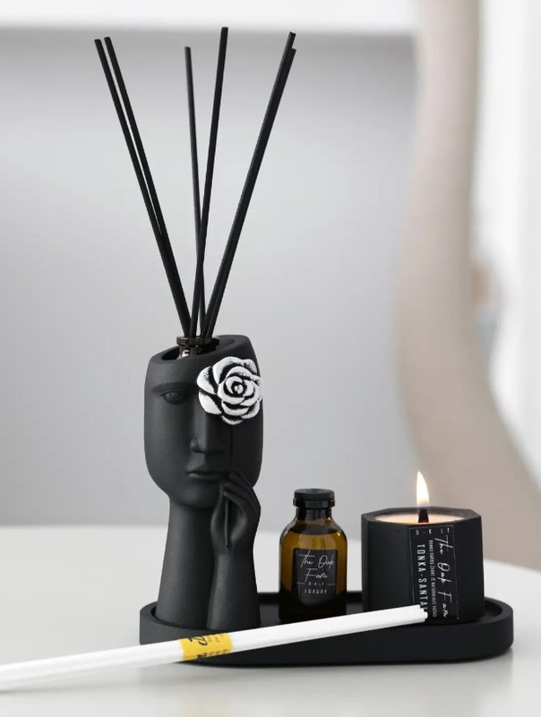 Figūrėlė–namų kvapas „Shy“ – išskirtinis rankų darbo namų kvapas – mažos statulėlės formos, įkvėptas skandinaviško stiliaus, pagamintas iš keramikinio gipso. Gintaro spalvos 20 ml buteliukas su kvapiuoju skysčiu įstatomas į statulėlės vidų.