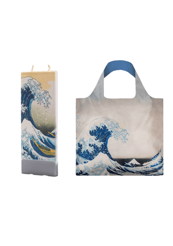 Dovanų rinkinys Žvakė FLATYZ „Hokusai – The Great Wave off Kanagawa“, 15 cm + LOQI pirkinių krepšys „Hokusai: The Great Wave“